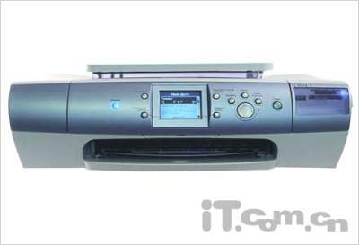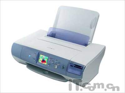愛普生 Stylus Photo R310,它是一款全面配合數(shù)碼相機的照片打印機,在外型上相對于前文介紹的那款HP機型的確龐大了不少,不過在功能性上也有增加了許多,這也是該款照片打印機的一大特色。它可以脫離PC進行獨立照片打印,共有獨立插卡、有線、紅外或藍(lán)牙無線三種照片輸入方式。